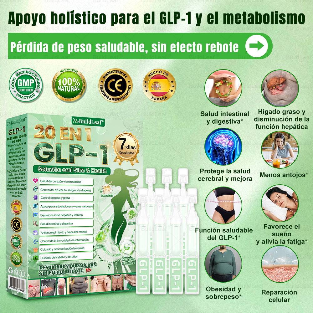✅ Formulación Científica: 𝘽𝙪𝙞𝙡𝙙𝙇𝙚𝙖𝙛® 𝗚𝗟𝗣-1 20-en-1 Solución Oral Slim & Health ha sido desarrollada científicamente para maximizar su efecto de retraso del vaciado gástrico — sin medicamentos, cirugías ni ejercicios intensos — ofreciendo pérdida de peso natural y, al mismo tiempo, ayudando a prevenir la flacidez de la piel tras adelgazar.