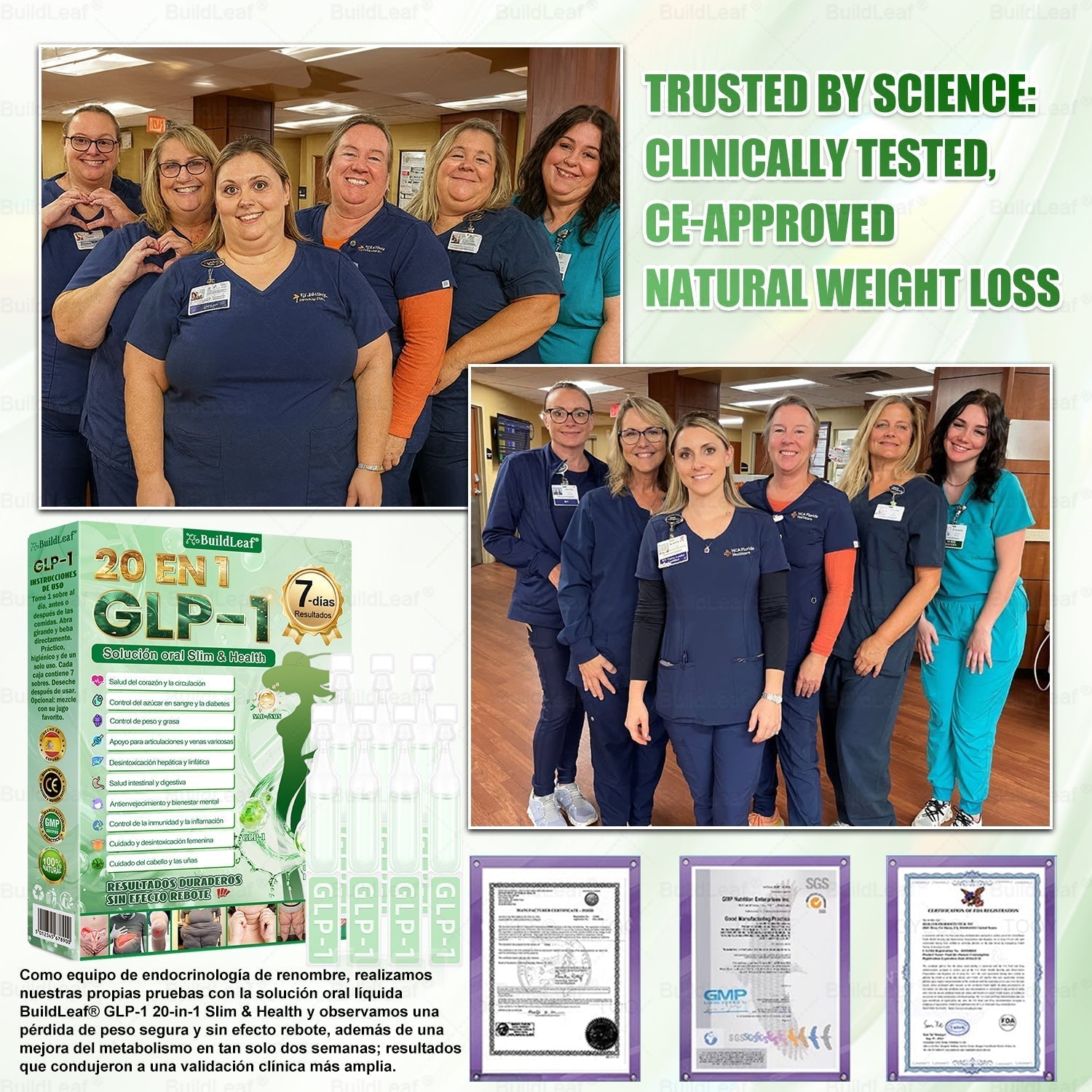 “Somos un equipo de expertos en endocrinología, la mayoría de los cuales hemos experimentado personalmente la obesidad y sus complicaciones asociadas. Por eso estamos dedicados a desarrollar soluciones seguras, naturales y efectivas para mejorar la salud metabólica y apoyar el control de peso. Durante 12 años de investigación, los miembros de nuestro equipo probaron primero la solución en sí mismos, logrando una reducción de peso significativa sin efecto rebote ni efectos secundarios.Posteriormente, realizamos estudios y ensayos clínicos extensos con más de 5,000 participantes, que confirmaron que 𝘽𝙪𝙞𝙡𝙙𝙇𝙚𝙖𝙛® 𝗚𝗟𝗣-1 20-en-1 Solución Oral Slim & Health ofrece beneficios notables y duraderos en la regulación metabólica, el control del apetito y la mejora general de la salud, especialmente en personas mayores de 40 años que luchan contra la obesidad.Respaldada por la investigación médica moderna, BuildLeaf® ha pasado rigurosos controles y certificaciones sanitarias de acuerdo con las normas europeas y certificaciones GMP en España, con su eficacia y cumplimiento oficialmente validados. Es una opción confiable, basada en la ciencia, especialmente para quienes buscan un enfoque natural, seguro y efectivo para el manejo del peso y el apoyo integral a la salud. Ya sea que hayas luchado con el peso durante años o simplemente quieras proteger tu salud con la edad, esta es una solución segura y respaldada por la ciencia en la que puedes confiar.