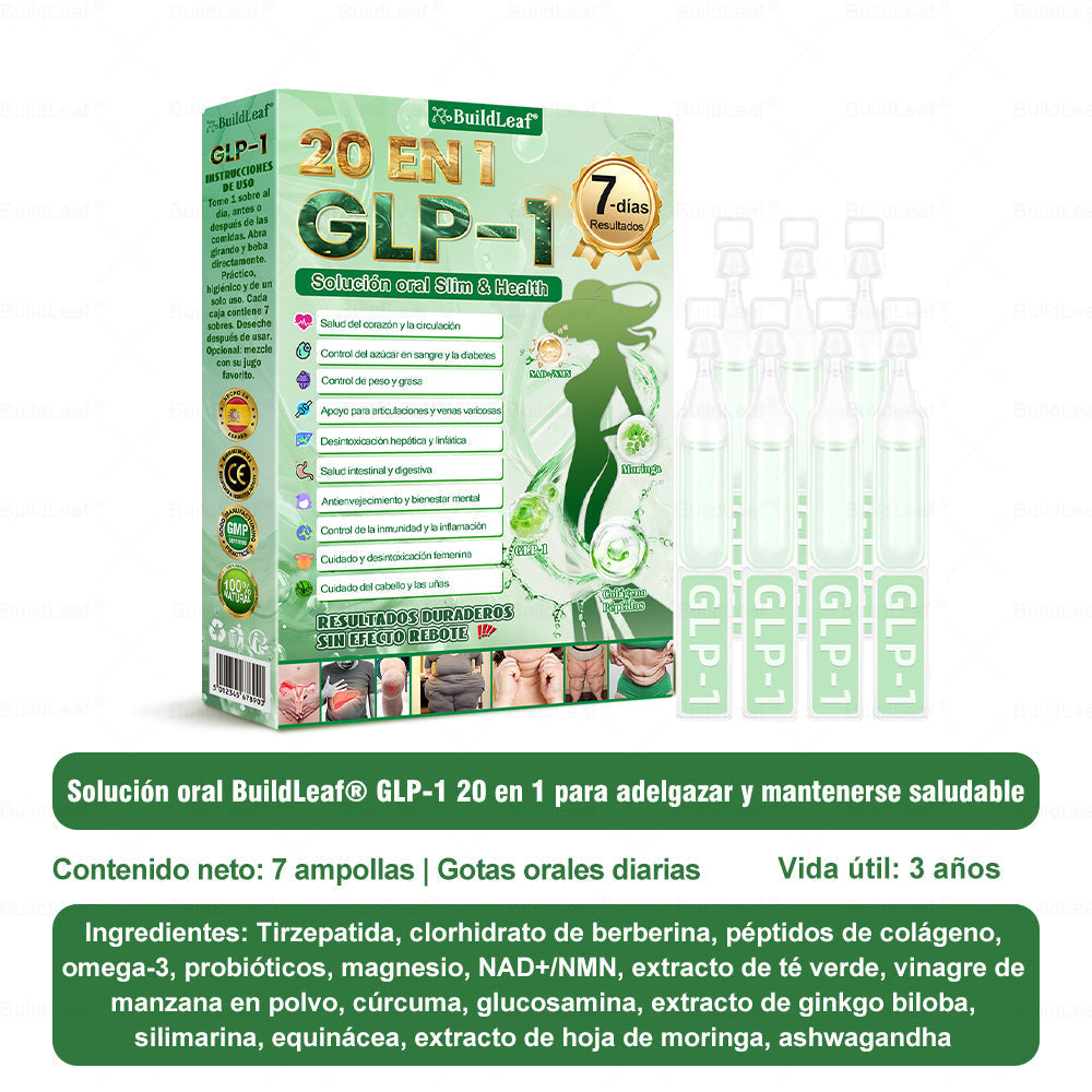 Probado clínicamente por expertos en endocrinología, el BuildLeaf® GLP-1 20-en-1 Solución Oral Slim & Health presenta una nueva fórmula natural con una potencia triple mejorada. Ofrece un cuidado integral del cuerpo 20 en 1 en tan solo 7 días, sin efecto rebote.
